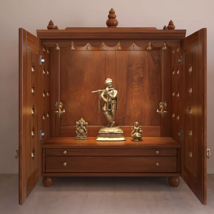This mandir has made in two different sizes to accommodate different requirements of customers. Shyam handmade teak wood mandir is made with teak wood and teak veneer, which gives this a rich look and long life.