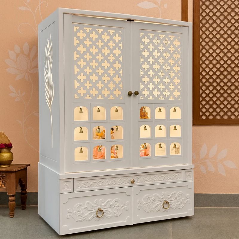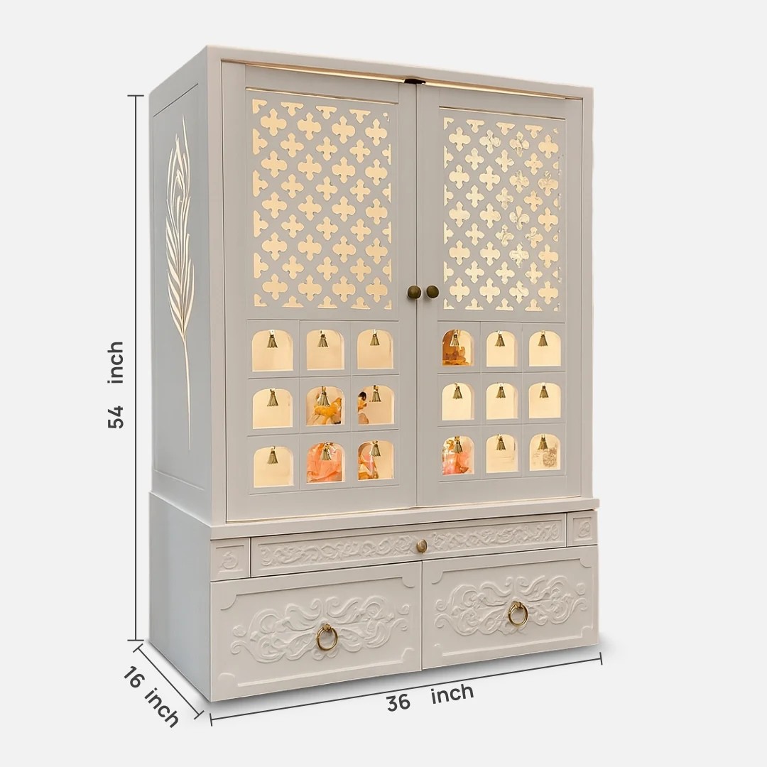 Create a calm and sacred prayer space with this White Wooden Temple for Home, designed to bring peace, purity, and elegance into your living space. Crafted from high-quality wood and finished in a soothing white colour, this mandir reflects simplicity, devotion, and traditional charm.